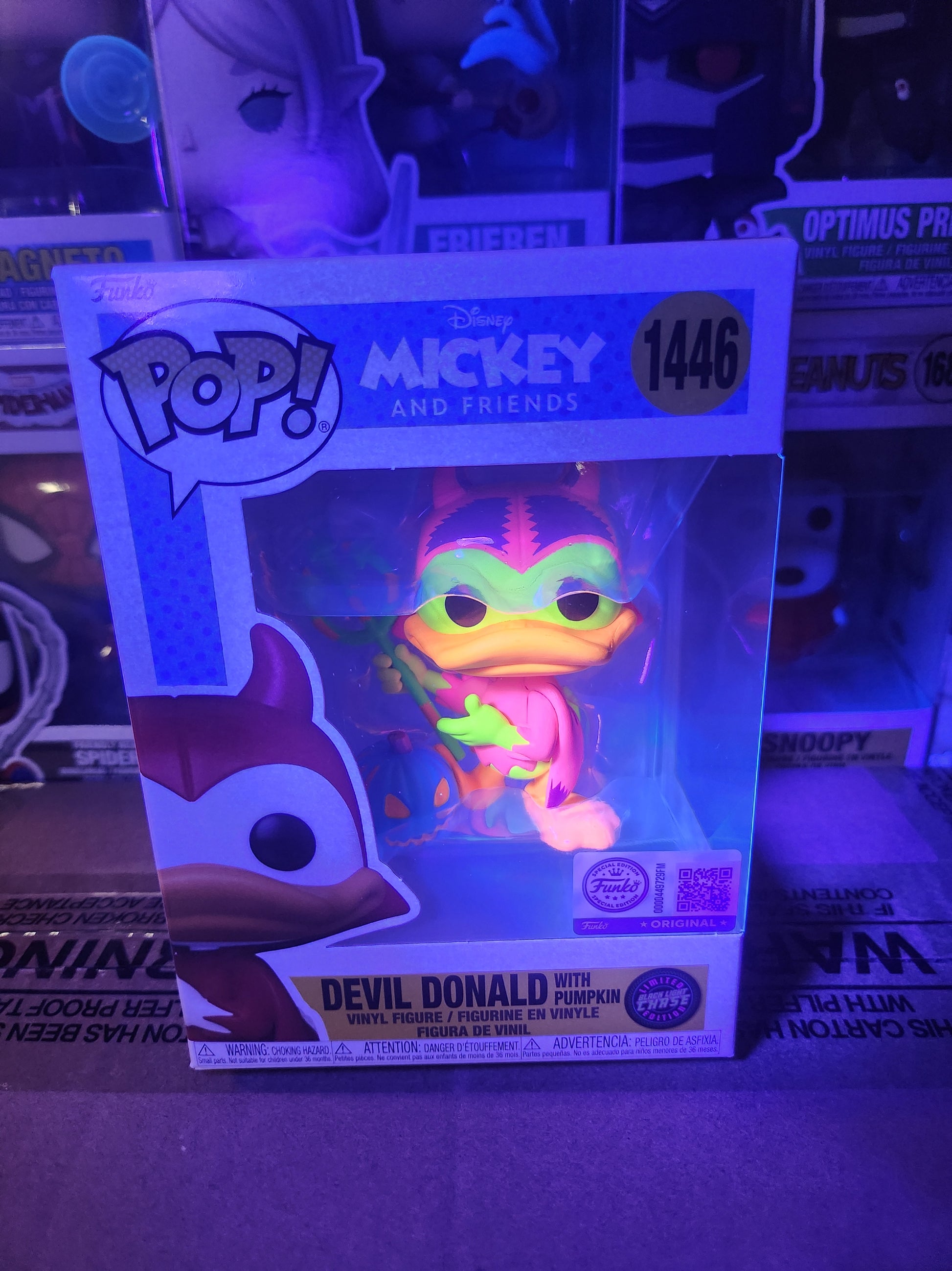 Discover the mischief of the Halloween season with this exclusive Funko Pop! Disney Devil Donald figure. With a unique pumpkin variant chase design, this collectible adds a devilish twist to your Disney collection. Made with high-quality vinyl, it's a must-have for any fan.
